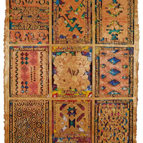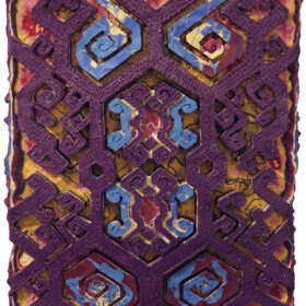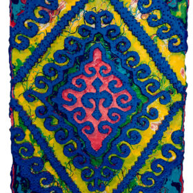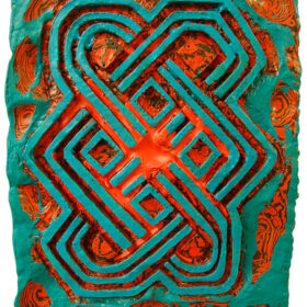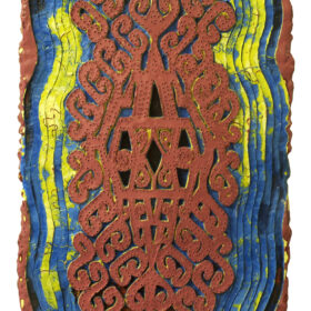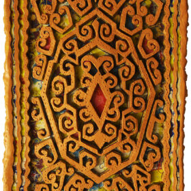 Pua Sungkit Iban, 2009; carved encaustic on panel; 12" x 9"