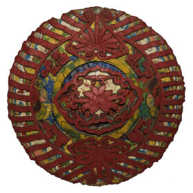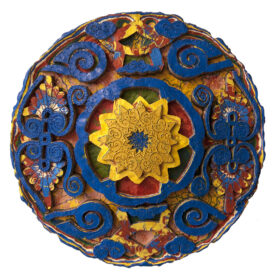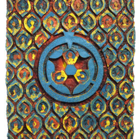 Garuda Wings, 2011; carved encaustic on panel; 12" diameter