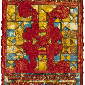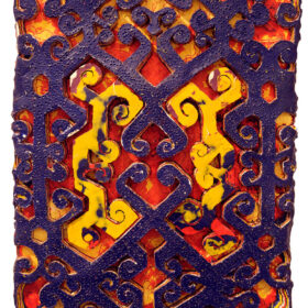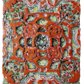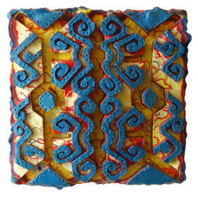 Pua Kumbu Ikat Red, 2008; caved encaustic on panel; 12" x 9"