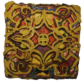 Geringsing II, 2010; carved encaustic on panel; 6" x 6"