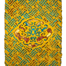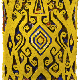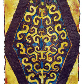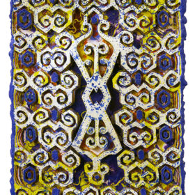 Put Kumbu Ikat Yellow, 2008; carved encaustic on panel; 12" x 9"