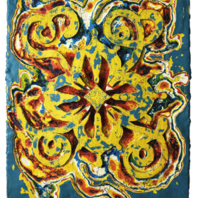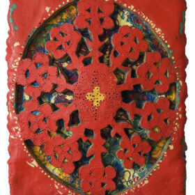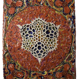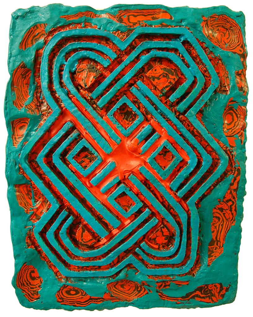 Ornament, 2010; carved encaustic on panel; 12" diameter