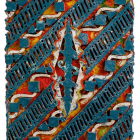 Parang with Blue, 2011; carved encaustic on panel; 20" x 10"
