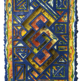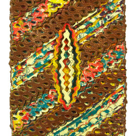 Re-formed Ikat Yellow, 2011; carved encaustic on panel; 12" x 9"