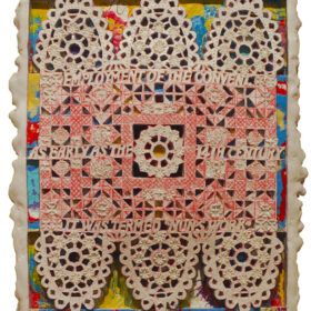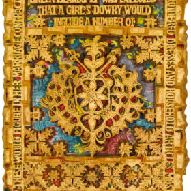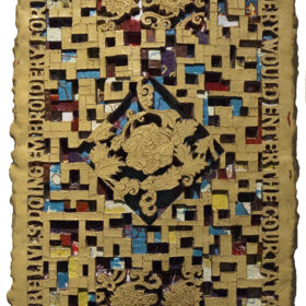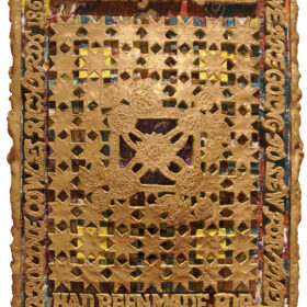 We Will Sew For them, 2013; carved encaustic on panel; 20" x 10"
