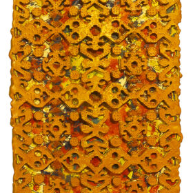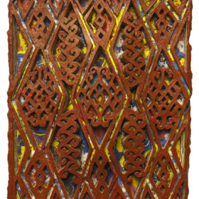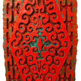 Parang with Red, 2011; carved encaustic on panel; 20" x 10"
