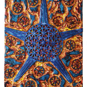 Untitled Starburst, 2004; carved encaustic on panel; 14" x 11"