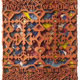 Wanita Wanita Menenun 2, 2012; carved encaustic on panel; 12" x 9"