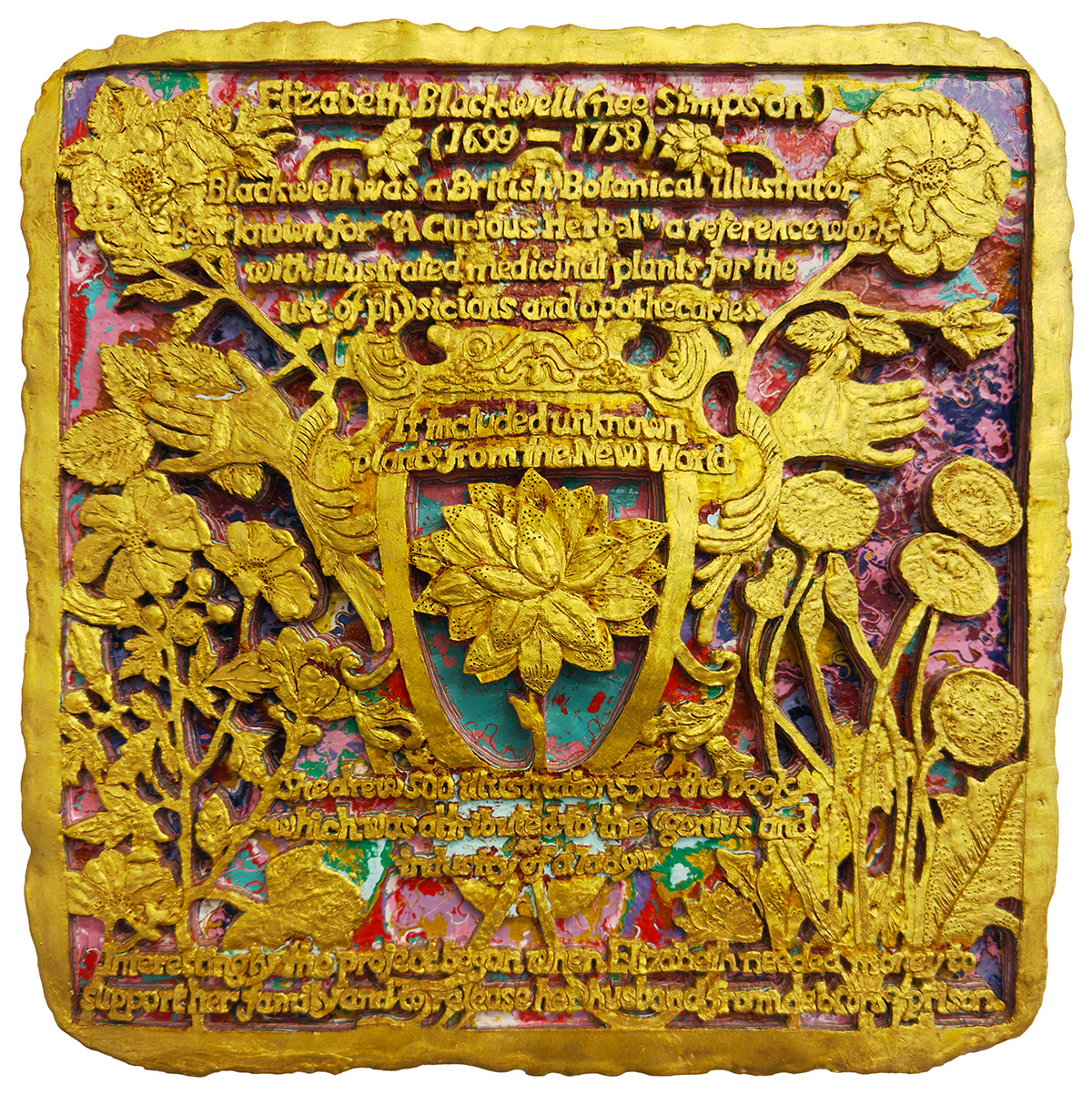 Elizabeth Blackwell, 2024, carved encaustic on panel, 12" x 12"