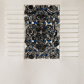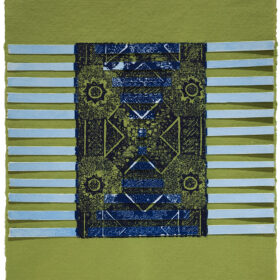 Woven with Blue, 2013; woven intaglio with hand coloring