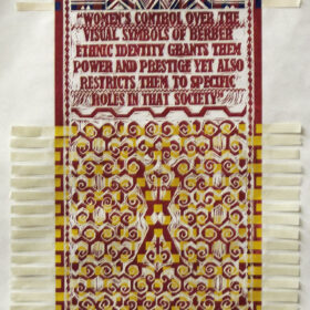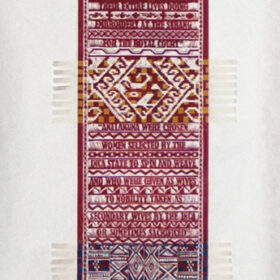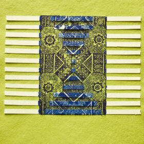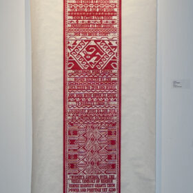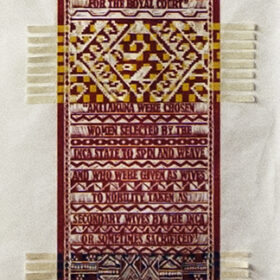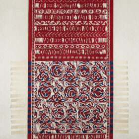 Women Weave II, 2013; woven color linoleum cut; 108" x 27"