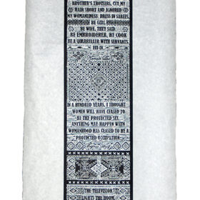 Worked by Women, 2014; linoleum cut; 108" x 27"