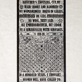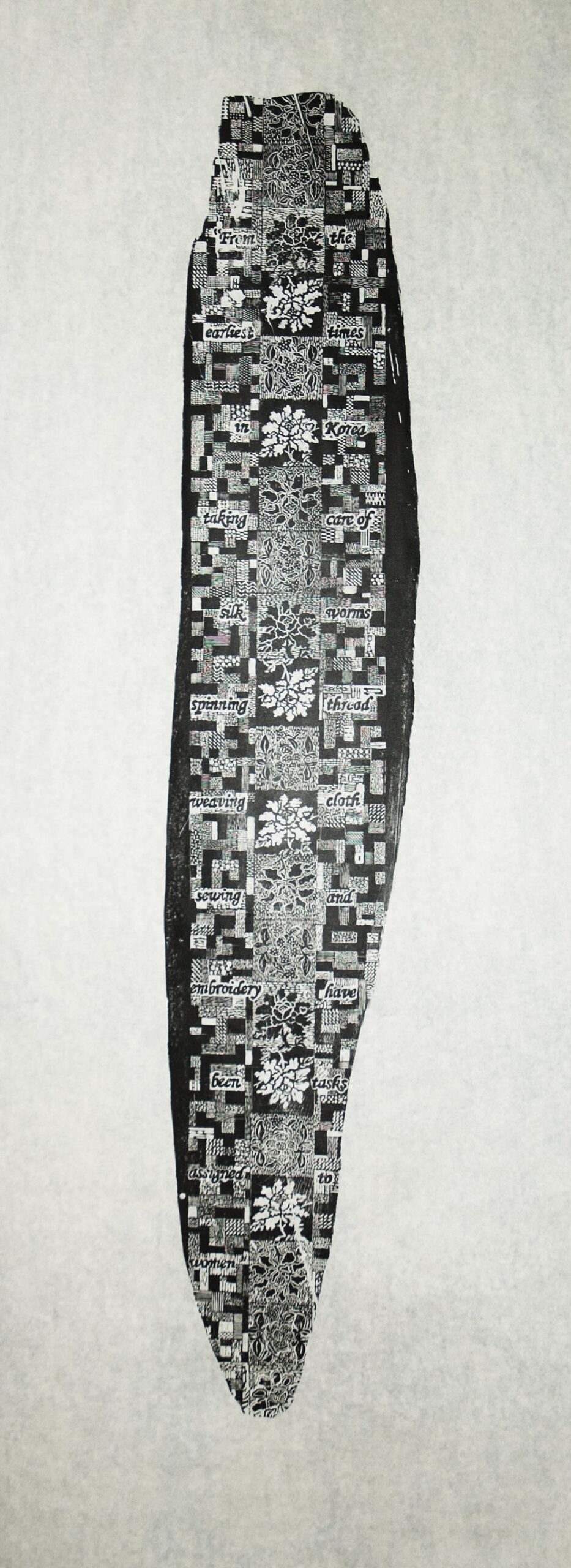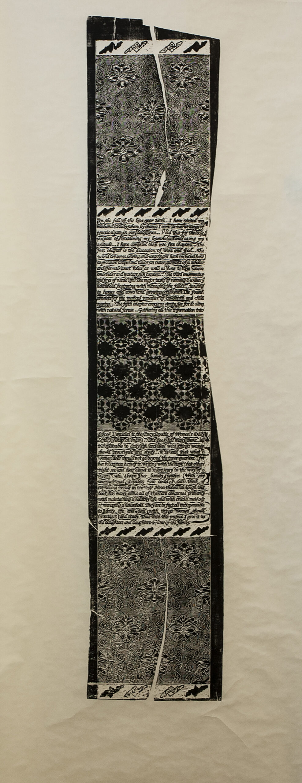 The Encyclopedia of Women’s Daily Life, 2019, woodcut, 72" x 14"