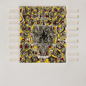 Woven Untitled with Red and Yellow, 2013; woven intaglio with hand coloring