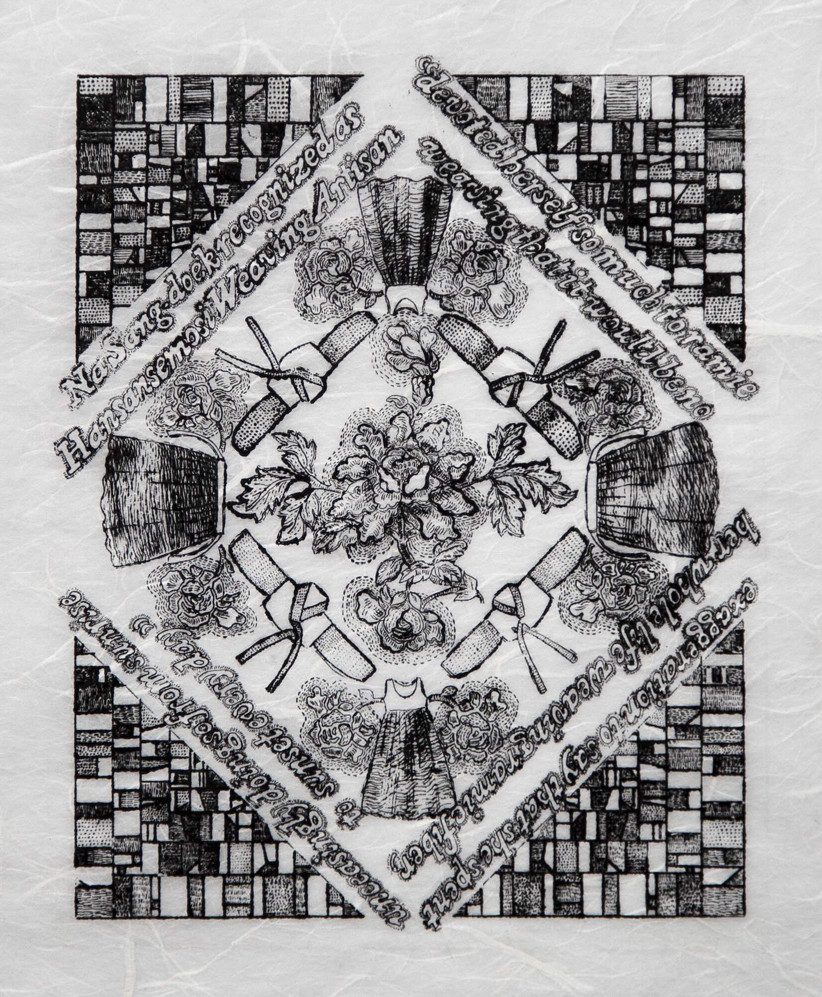 Nuns Work, 2016; intaglio on fabric