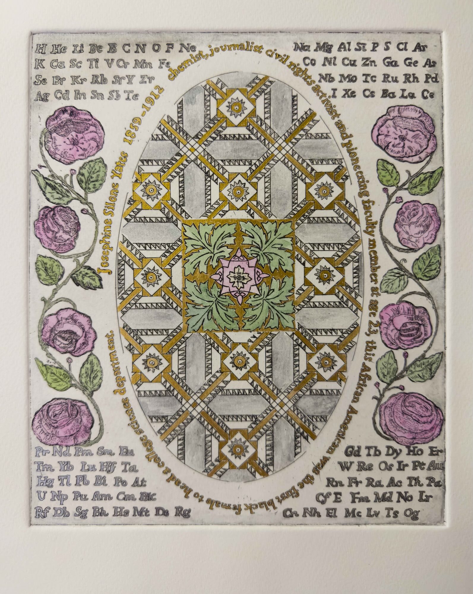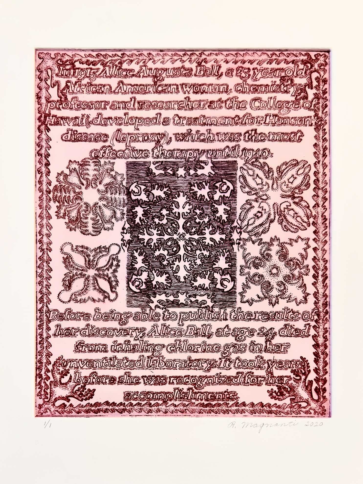 Alice Augusta Ball, 2020, color etching monoprint, 10" x 8"