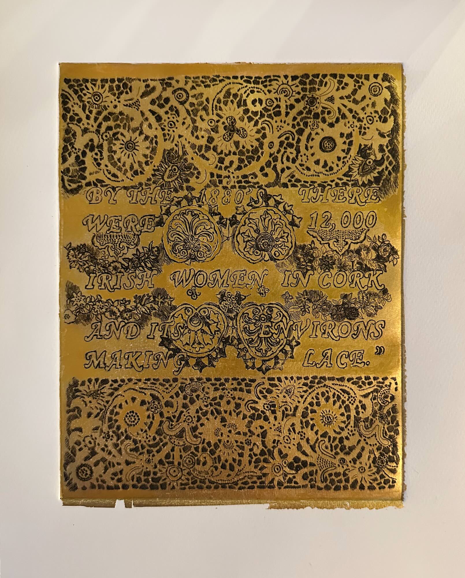 Irish Women, 2023, etching monoprint with gold leaf, 10" x 8"