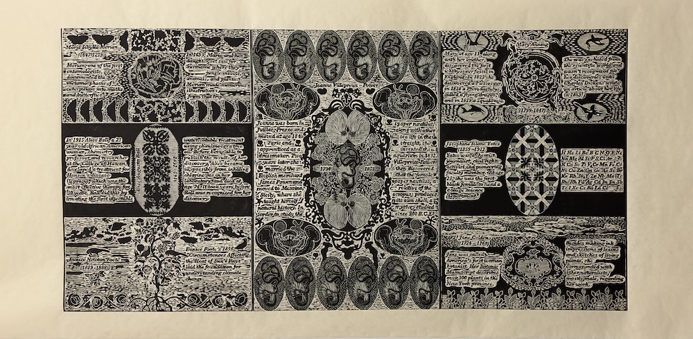 Women of Science - Woodcut, 2023, woodcut, 30" x 60"